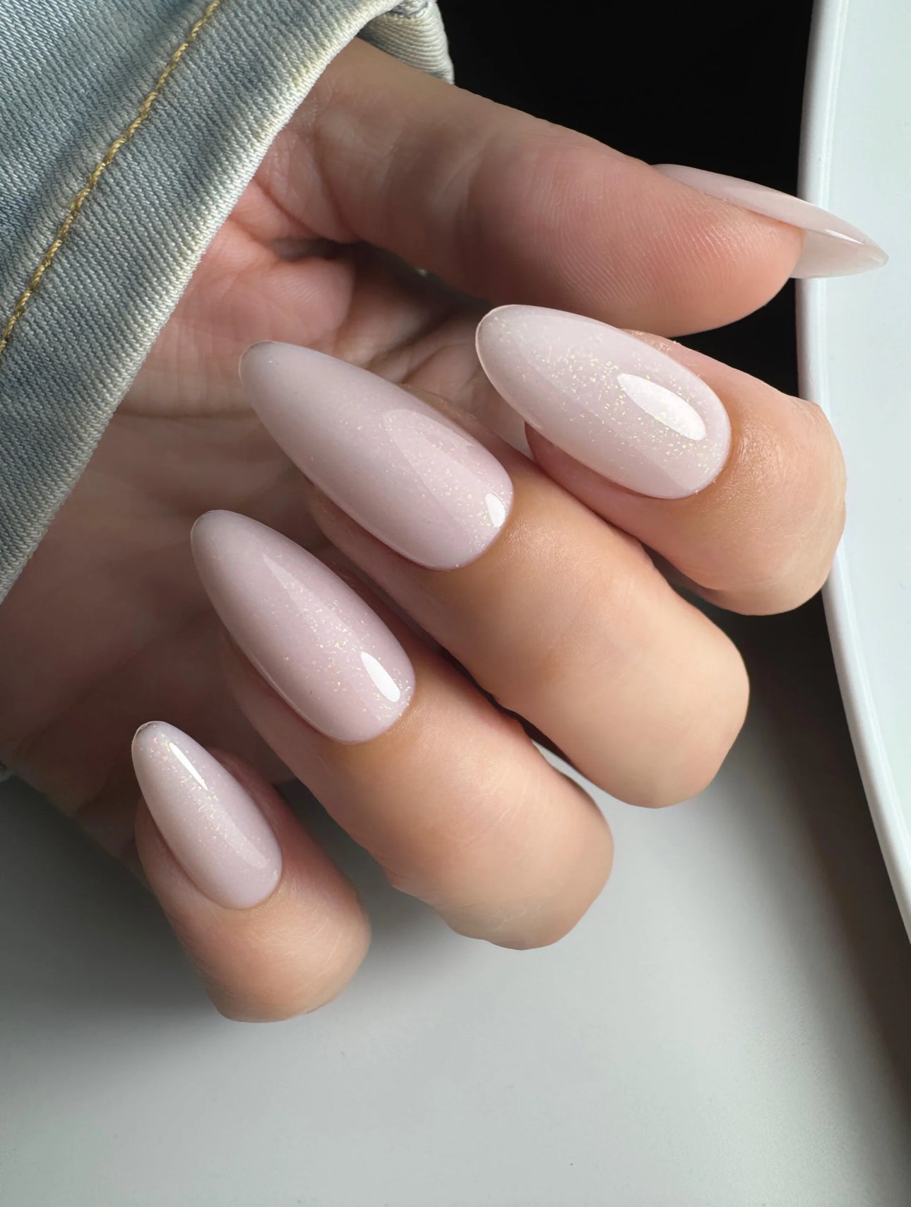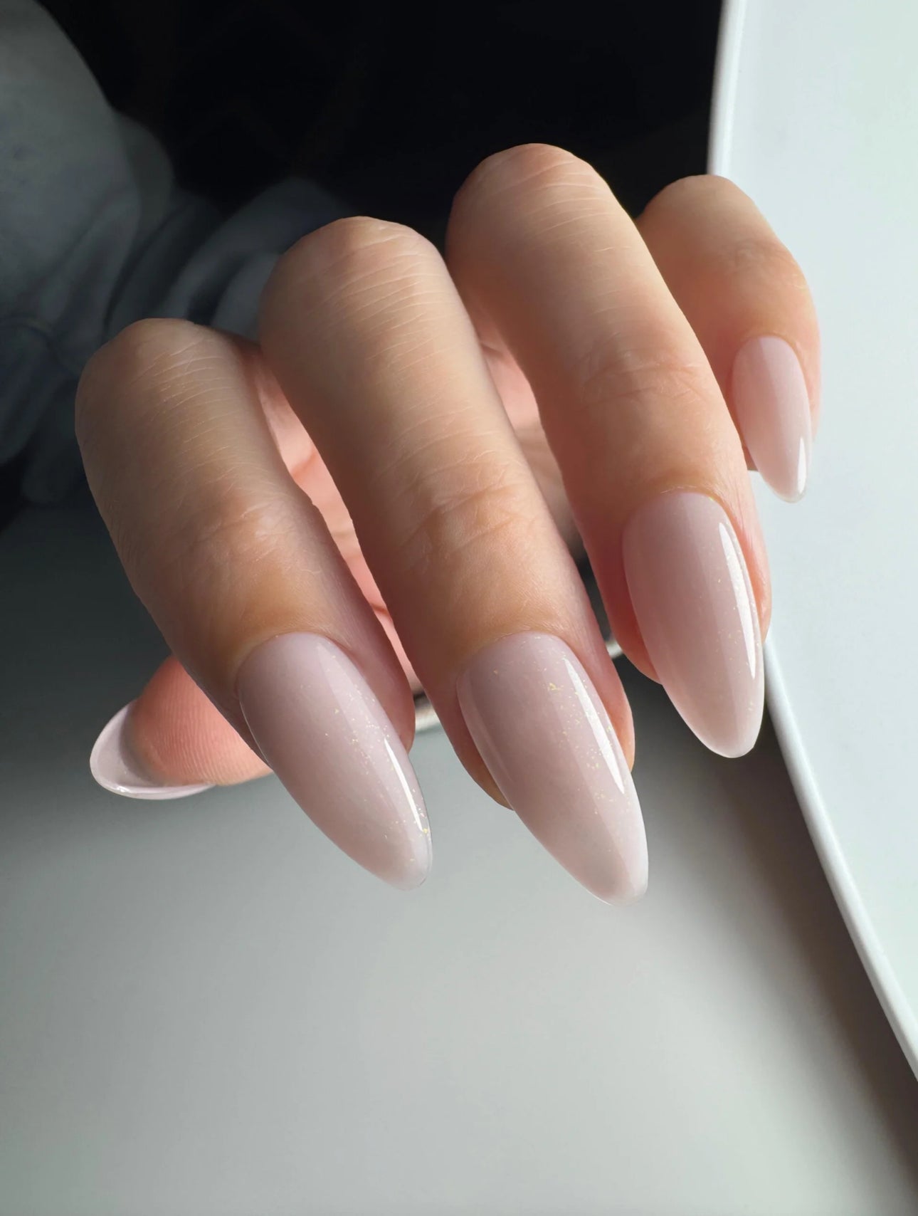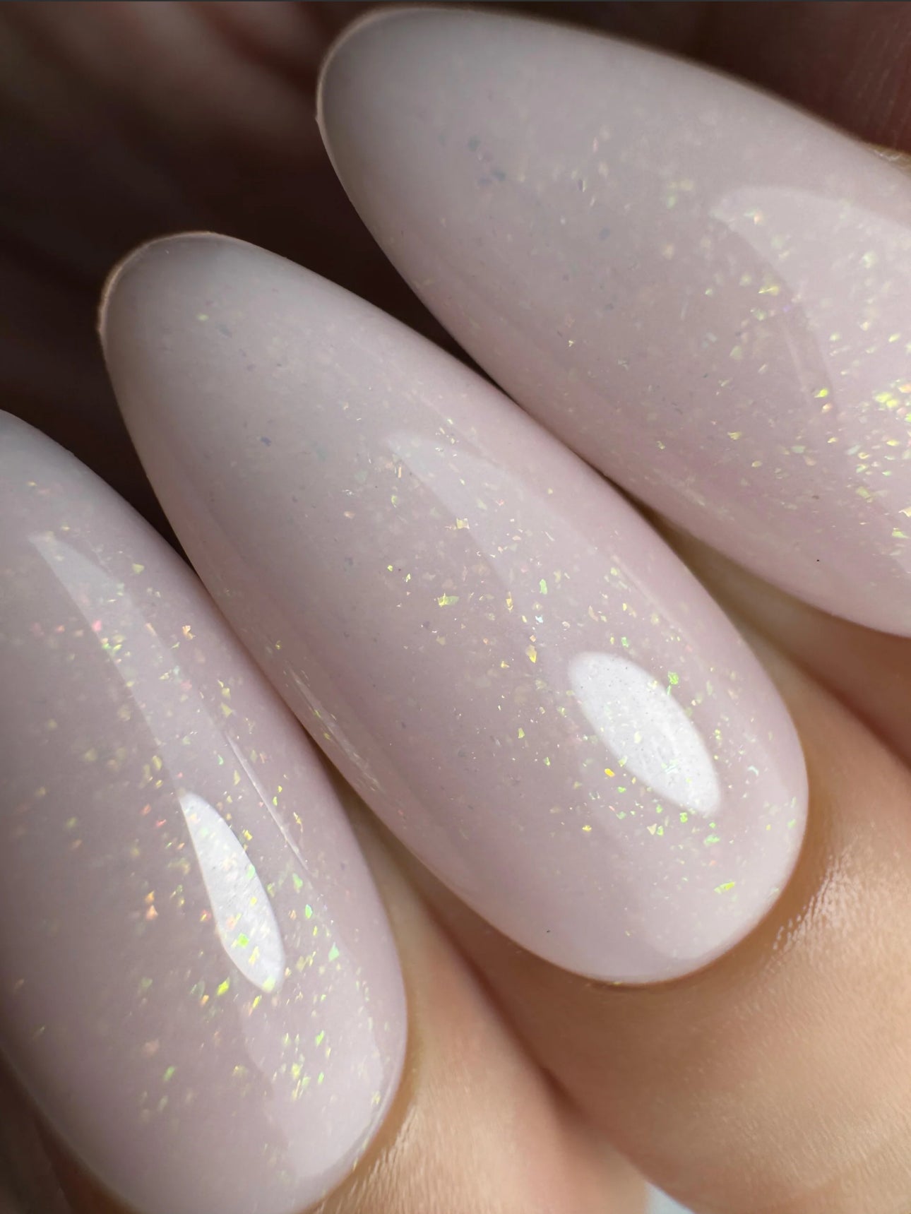 6. Breng een strijklaagje op de nagel aan van de BIAB en hard deze nog niet uit