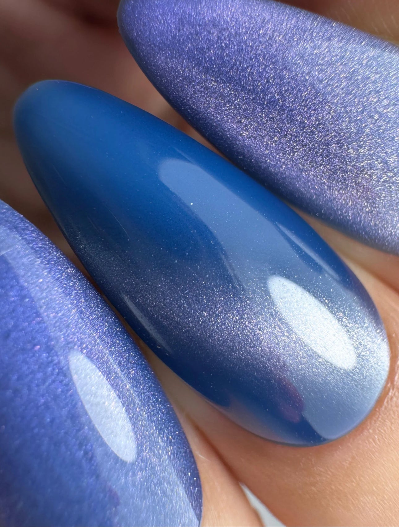 6. Breng een laagje cat eye gelpolish aan en hard uit onder een LED/UV lamp