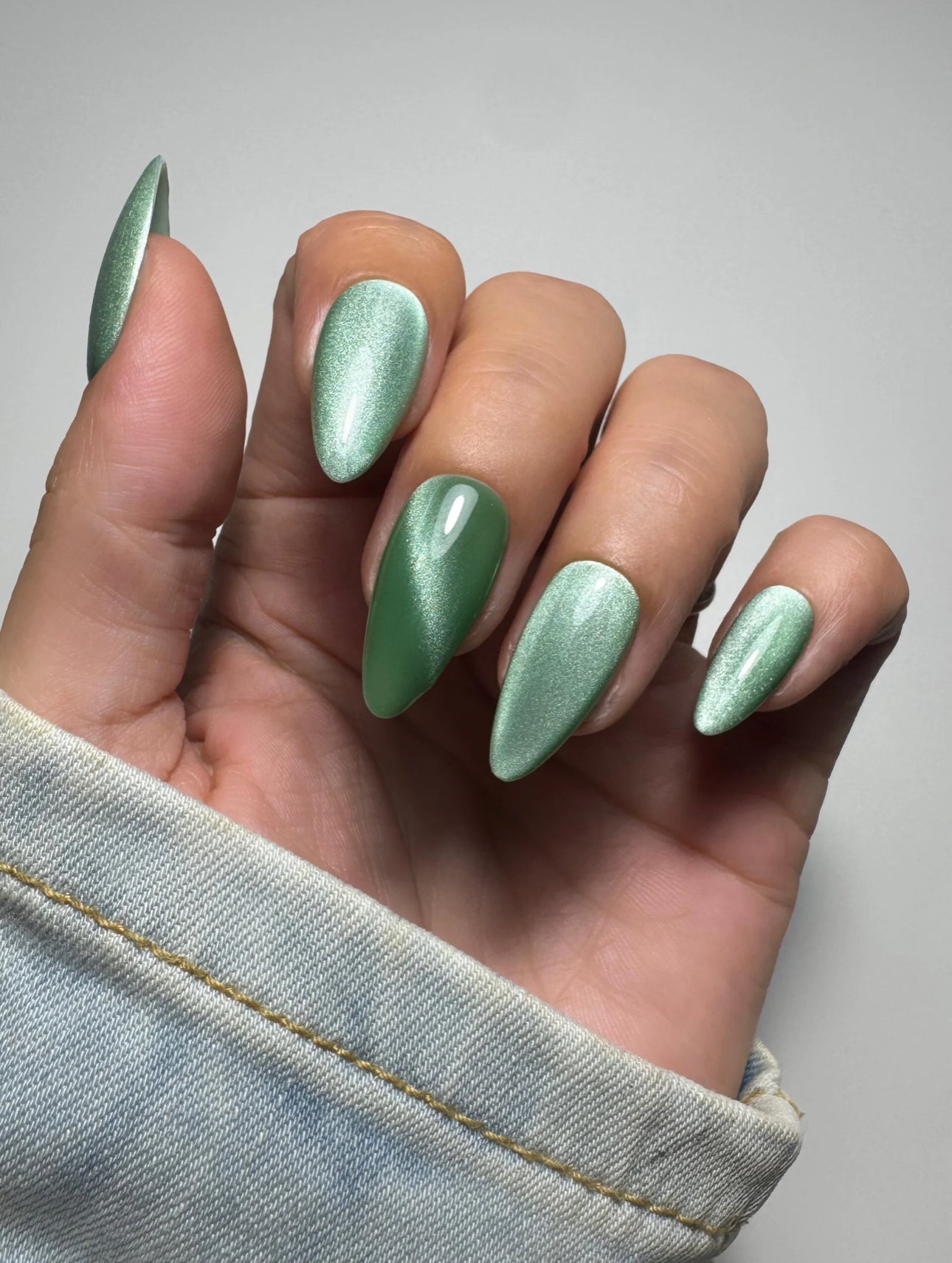 7. Breng een tweede laagje cat eye gelpolish aan en bewerk met een magneet. Wanneer je tevreden bent, hard je de nagel uit onder een LED/UV lamp