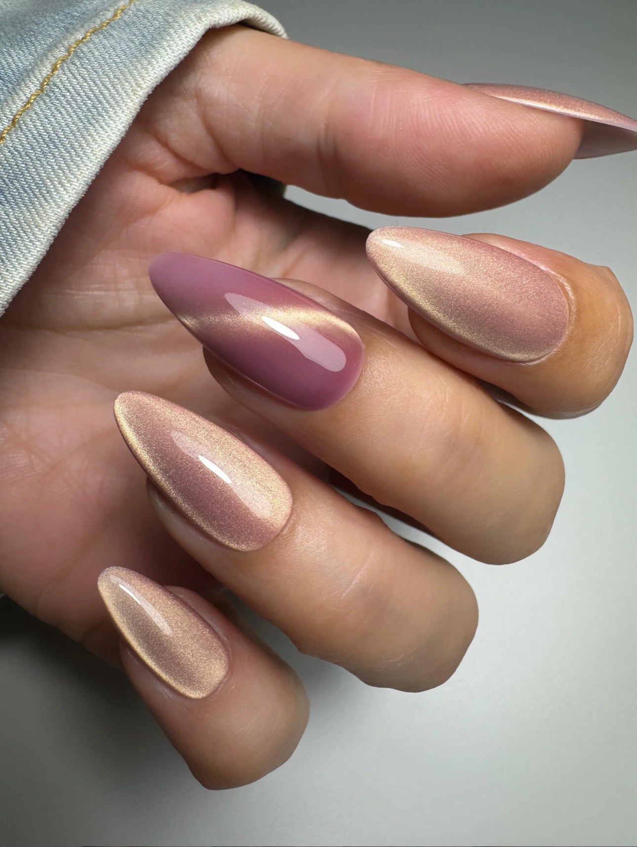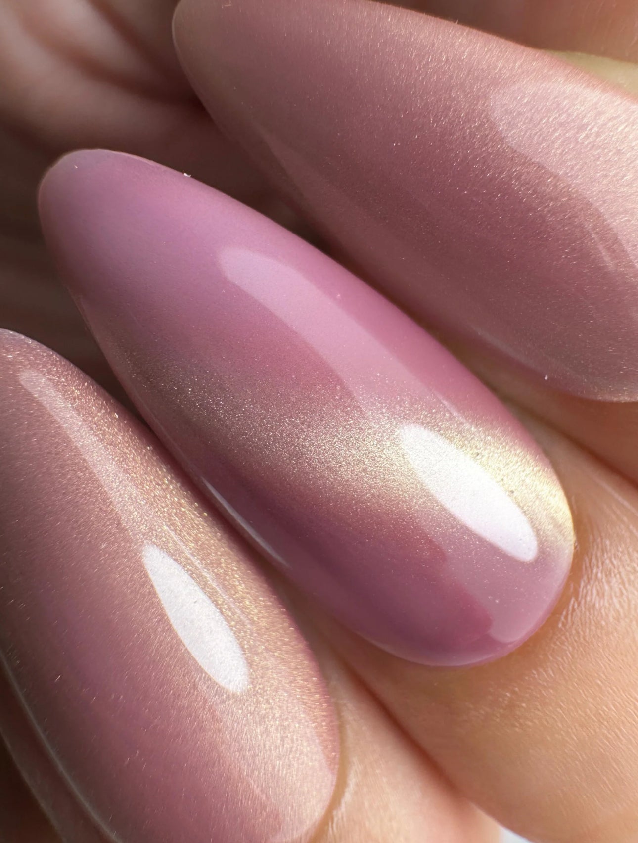 6. Breng een laagje cat eye gelpolish aan en hard uit onder een LED/UV lamp