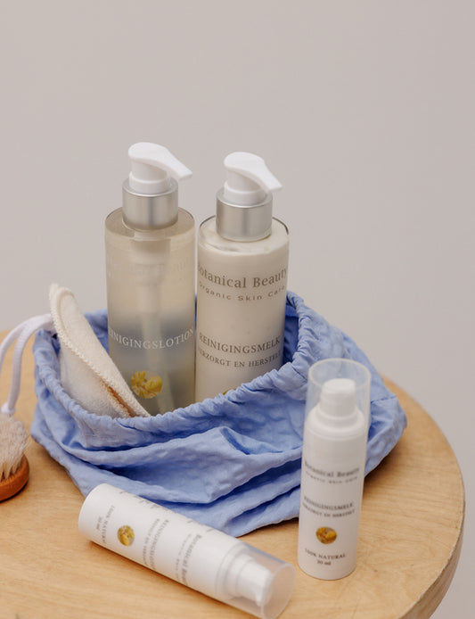 Toilettasje met travel size Reinigingsmelk en -lotion